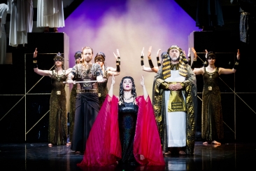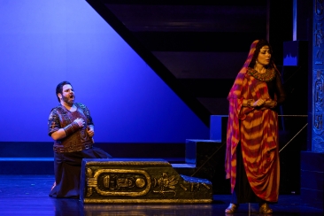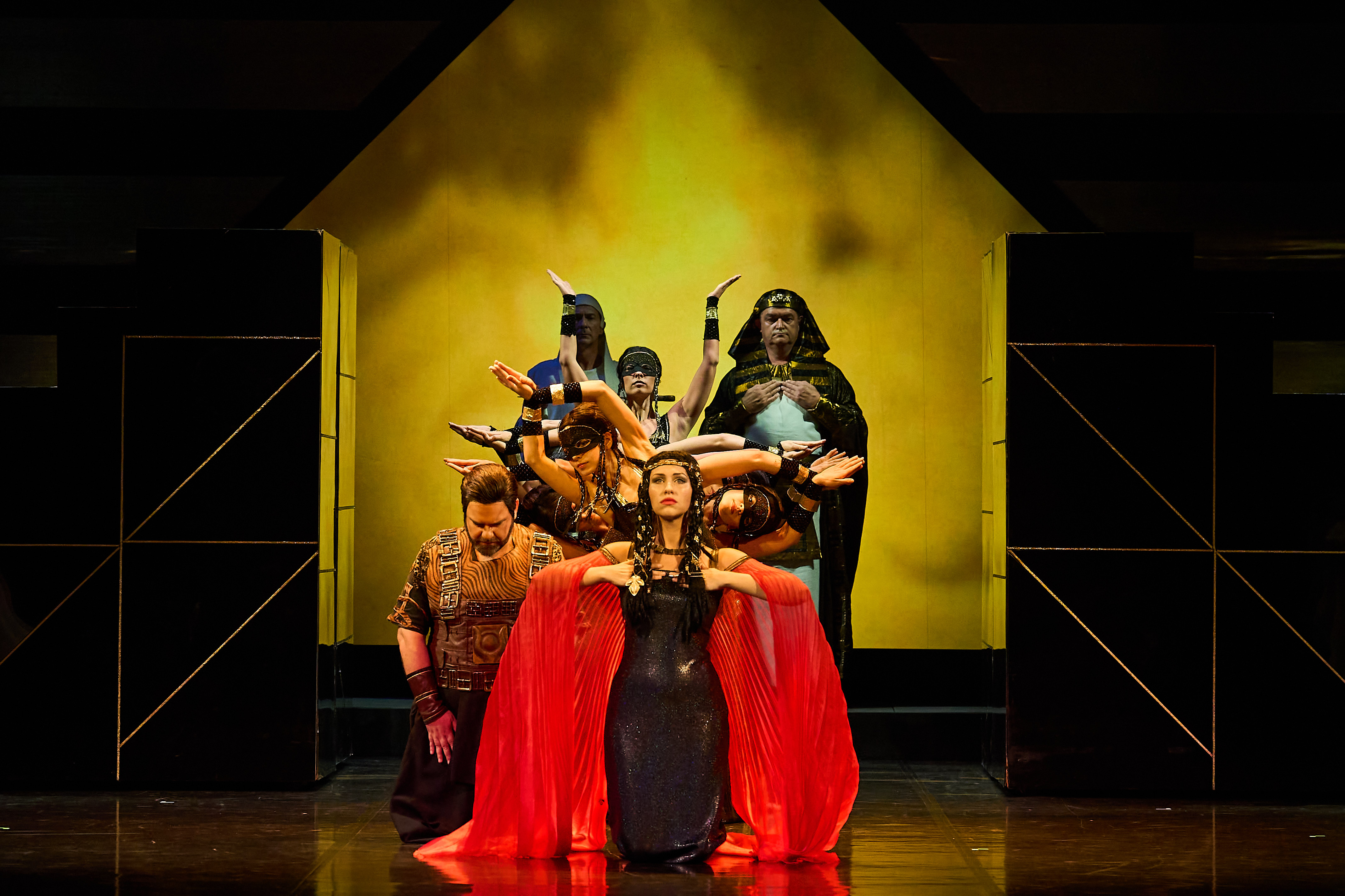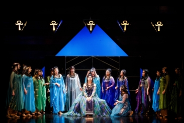 Dances and music to celebrate Radamès’ victory take place (Chorus, Amneris: Chi mai fra gli inni e i plausi / “Our songs his glory praising”). However, Amneris is still in doubt about Radamès’ love and wonders whether Aida is in love with him. She tries to forget her doubt, entertaining her worried heart with the dance of Moorish slaves (Chorus, Amneris: Vieni: sul crin ti piovano / “Come bind your flowing tresses”).